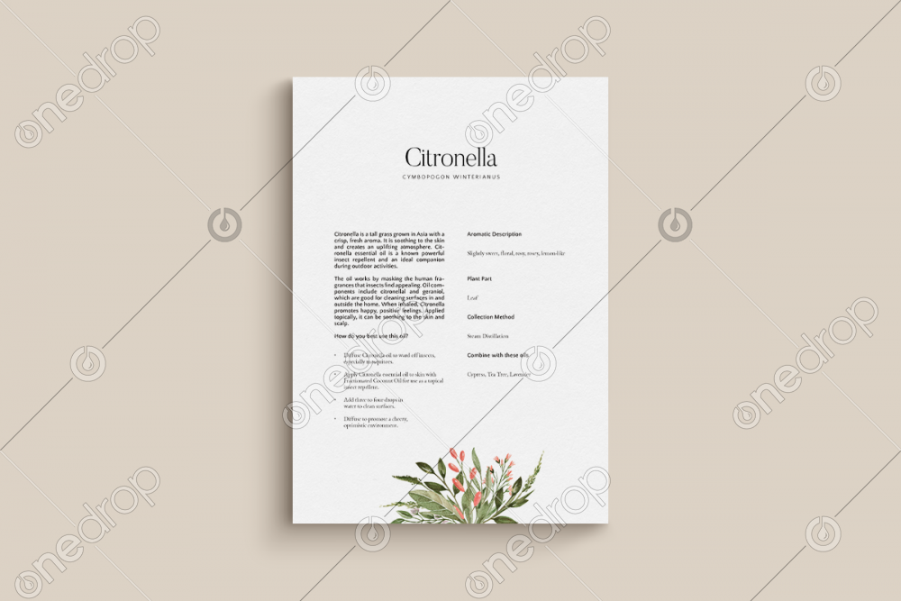 This minimalistic one page document educates your customers about the usage of Citronella oil.