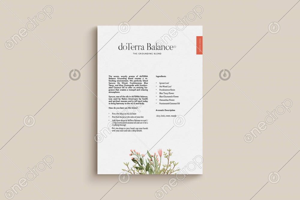 These minimalistic one page document informs your customers about the dōTERRA Balance® Grounding Blend. Share this document with your customers to educate them about this powerful blend.