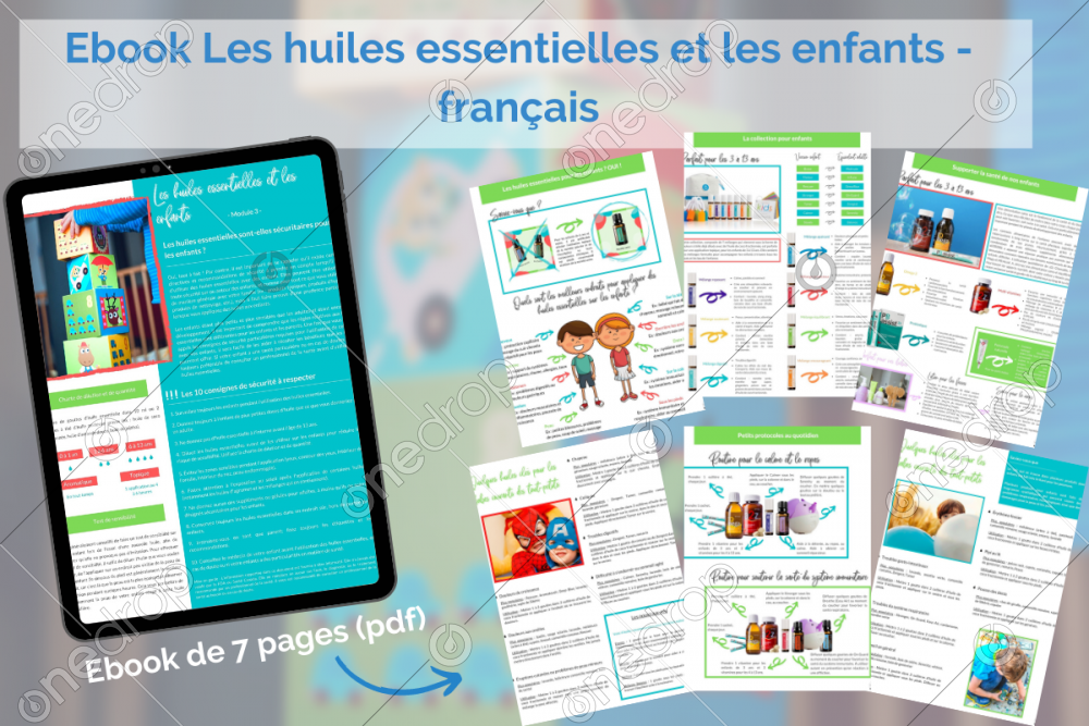 Pour obtenir le e-book complet (145 pages divisé en 18 modules et contient des notions théoriques sur les divers sujets du quotidien, des notions pratiques, des trucs, astuces et recettes pour tous les sujets couverts, ainsi que des notions précises sur les huiles et les besoins courants), cliquez ici.
