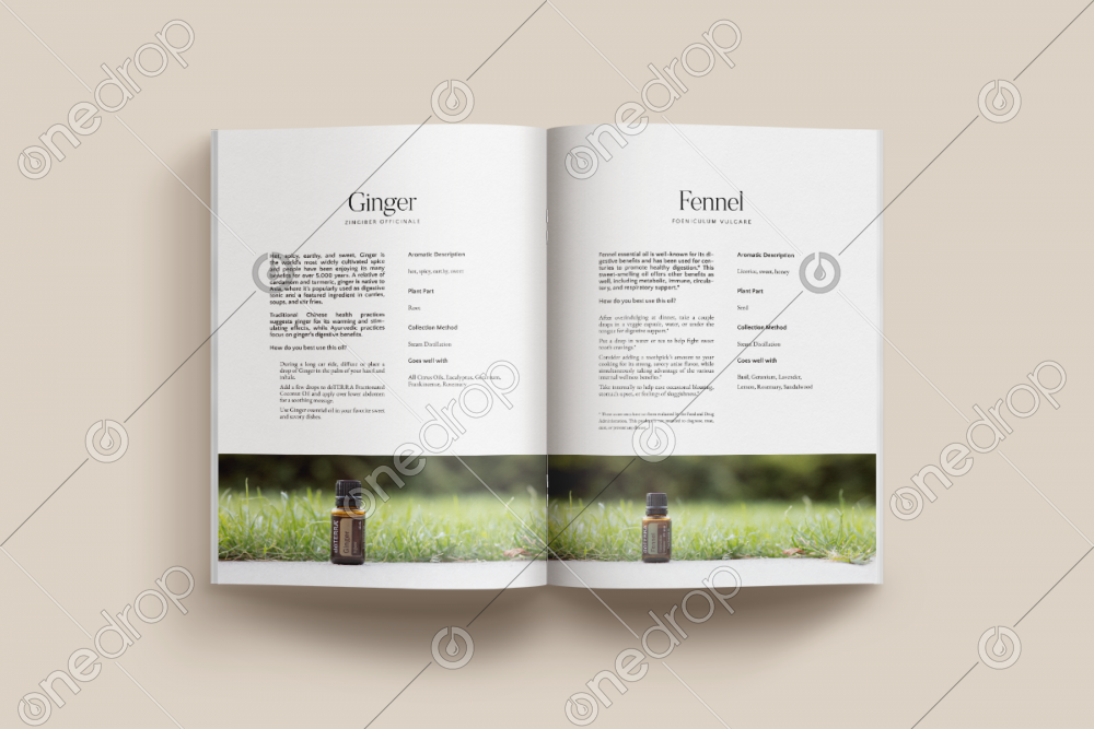 This minimalistic seven page document informs your customers about the safe use of essential oils and how to use the fennel and ginger oil.