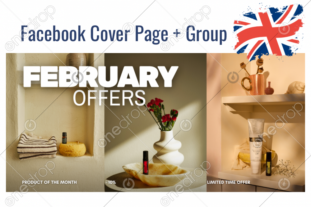 Facebook page and group cover with european February promotions.