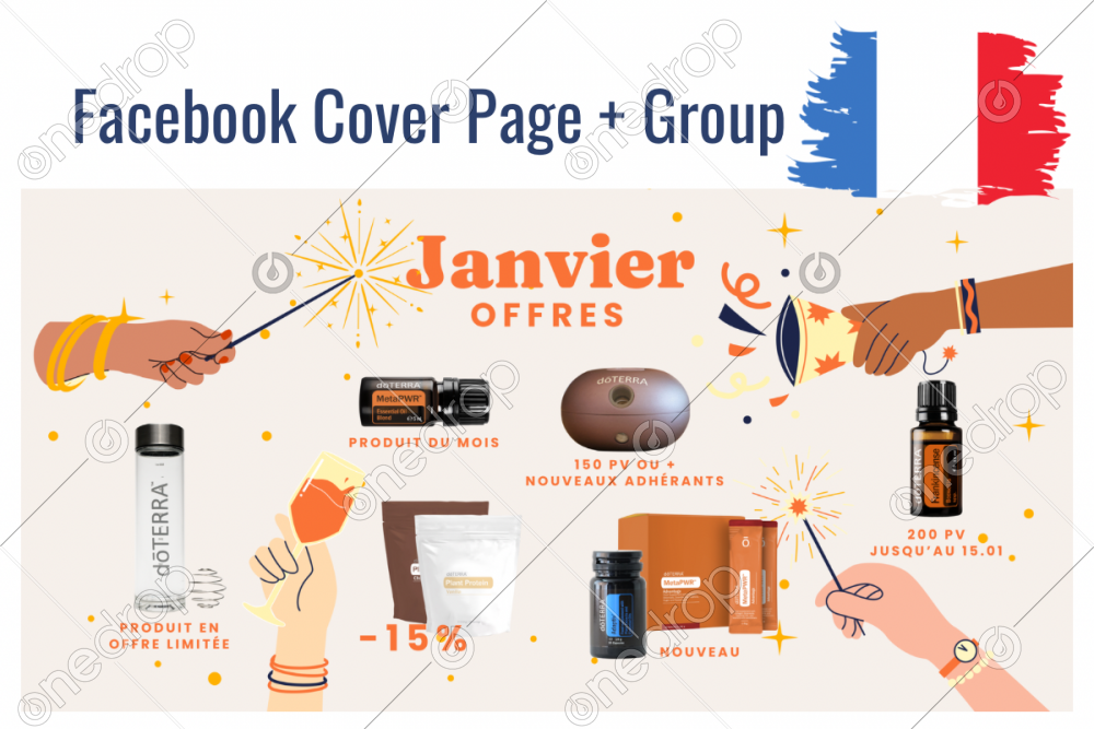 Couverture pour page et groupe Facebook avec les promotions de Janvier.
