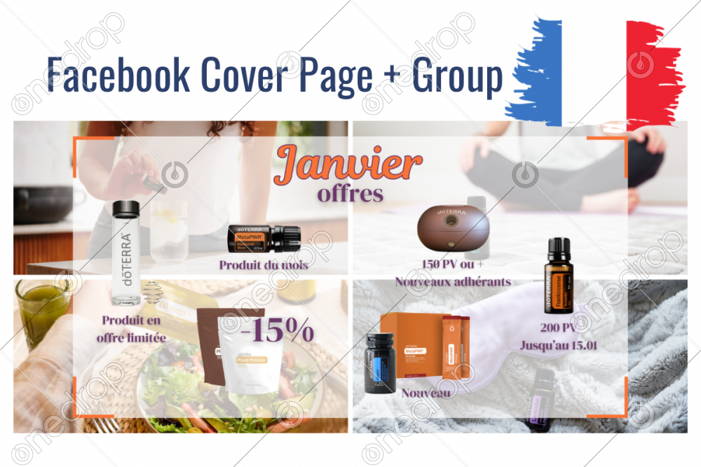 Couverture pour page et groupe Facebook avec les promotions de Janvier.