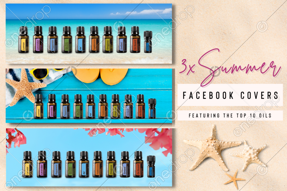 A bundle of 3 x vibrant, summer themed Facebook covers featuring dōTERRA's top 10 oils.