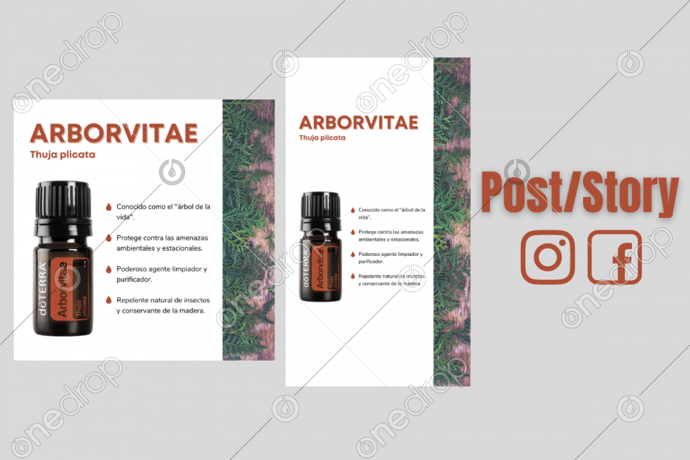 Paquete de 2 imágenes con los beneficios del Aceite Esencial de Arborvitae [Árbol de la Vida].