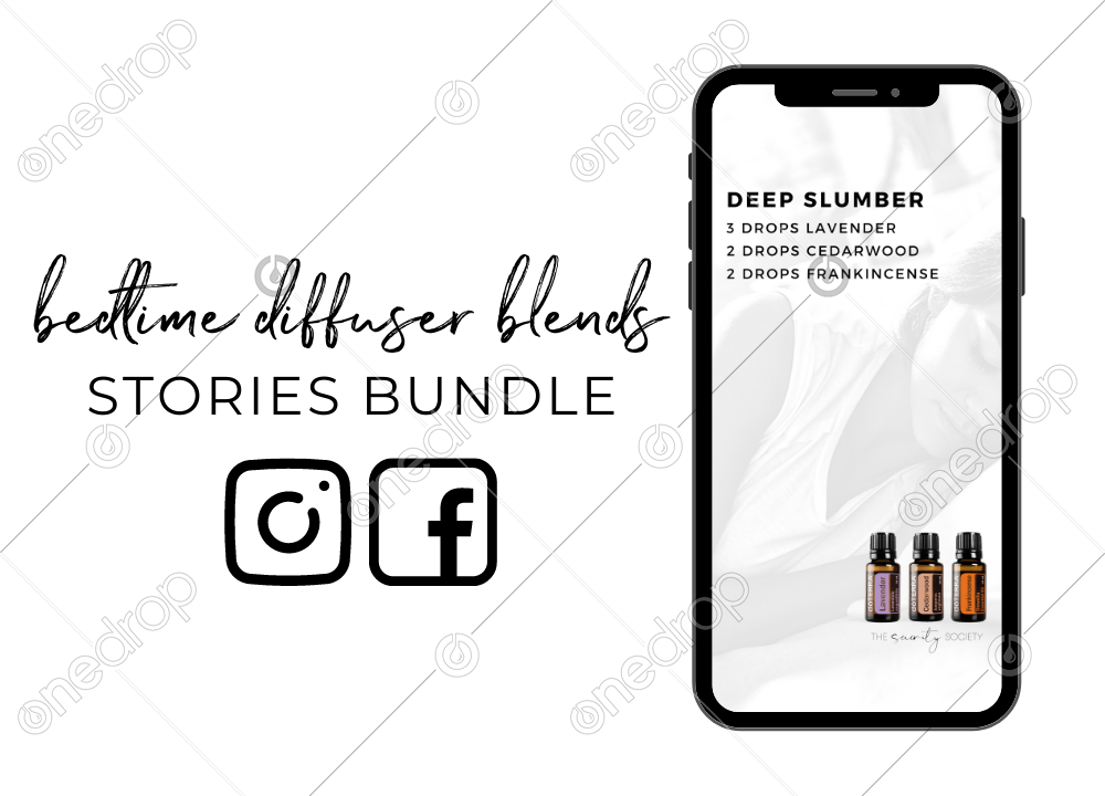 6 Bedtime Diffuser Blends Stories with recipes + oil images.