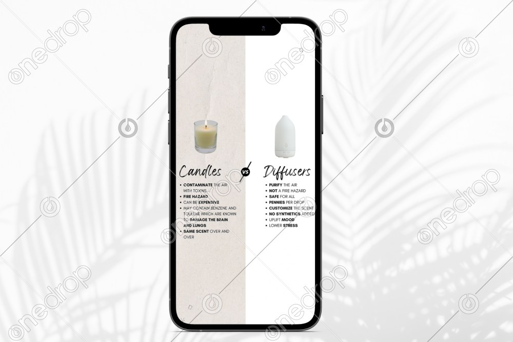 View the square version here: https://www.onedropdesigns.com/doterra/social-media-posts/candles-vs-diffusers/