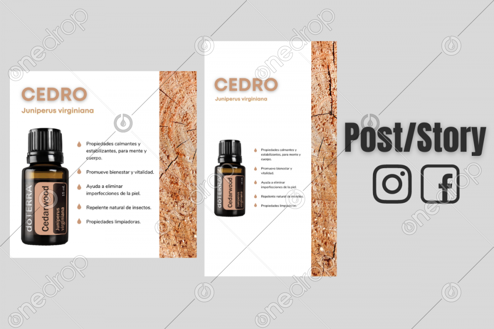Paquete de 2 imágenes con los beneficios del Aceite Esencial de Cedro (Cedarwood).