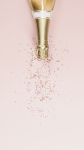 - Simple flat-lay Champaign bottle with pink, confetti background