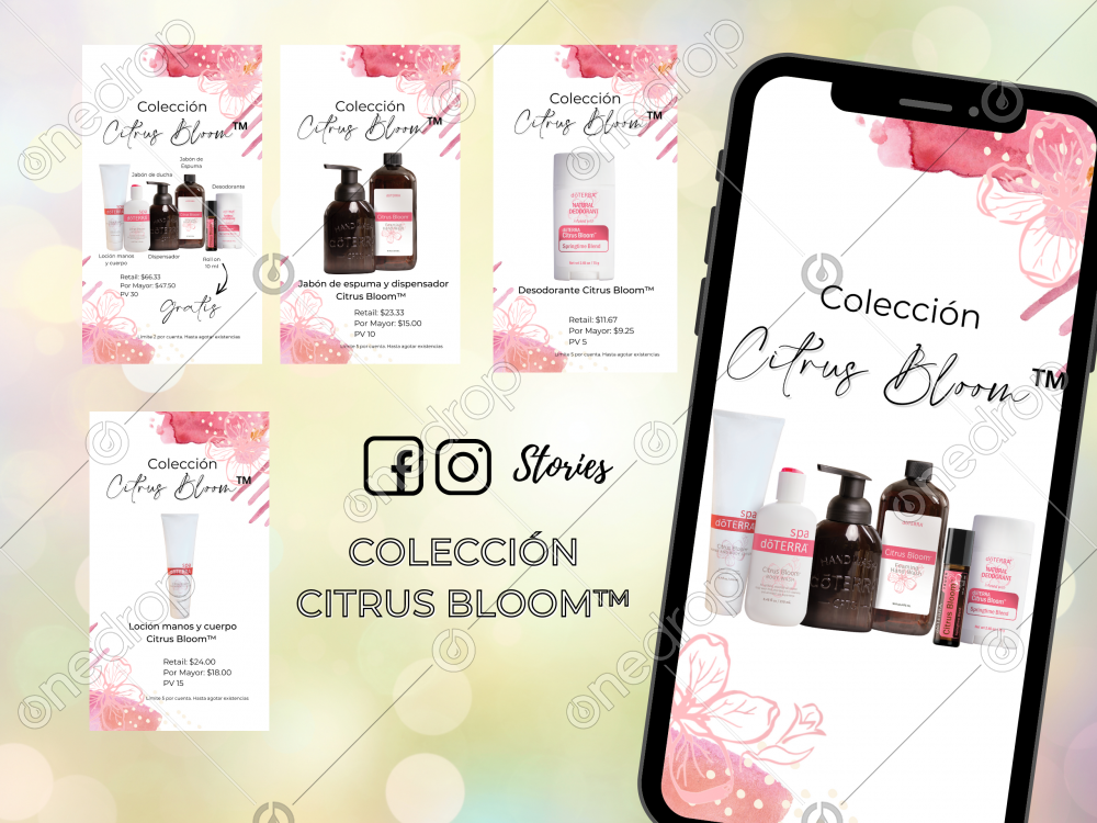 Comparte en las historias de tus redes sociales sobre la nueva colección Citrus Bloom™. Estará disponible a partir del lunes 24 de Mayo. Este pack cuenta con detalle de valor unitario de cada producto y se ha dejado afuera el jabón de ducha, ya que por el momento solo estará disponible si se adquiere la colección completa y lo menos que queremos es causar confusión sobre lo que está y lo que no está disponible.