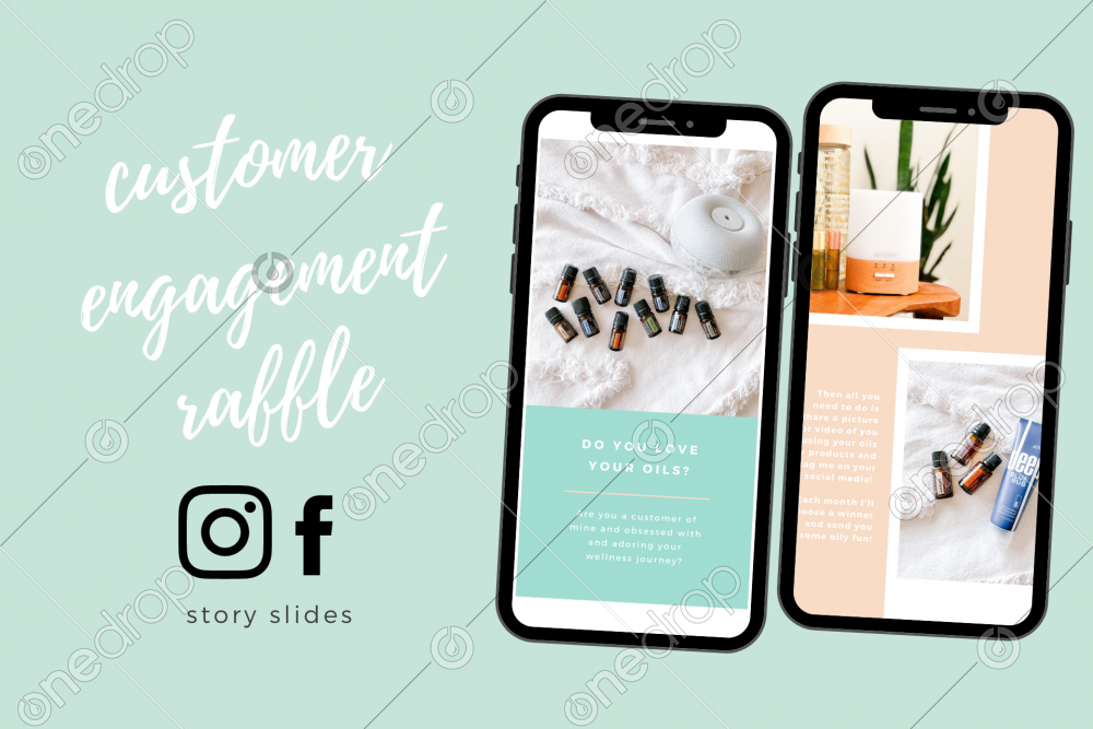 One of my favorite ways to initiate engagement with my customers is to offer a social media giveaway. Once a month I present these sets of story slides asking my customers if they're enjoying their dōTERRA products and having fun and if they'd care to share about it on THEIR social media to THEIR friends and family and tagging me for a chance to win some fun oily prizes from me! My customers love that and often participate!