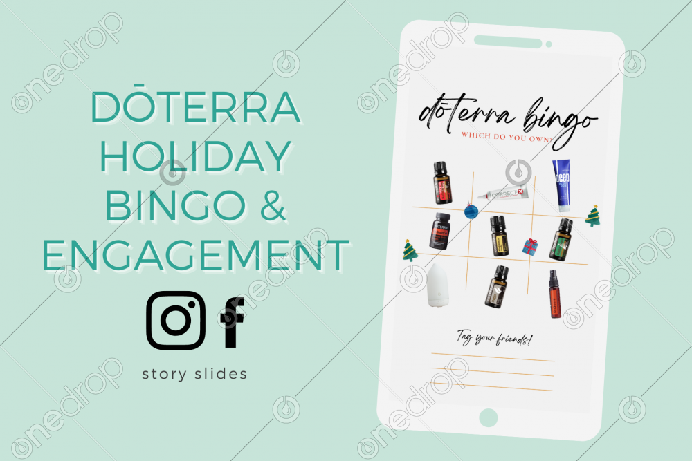 Get some customer and follower engagement with this fun Holiday edition of dōTERRA bingo! Simply post to YOUR stories with your answers marked and then post an empty one for your followers to screenshot and post on their slides! Please make sure to watermark so that when screenshot, your watermark is visible! This protects my work :)