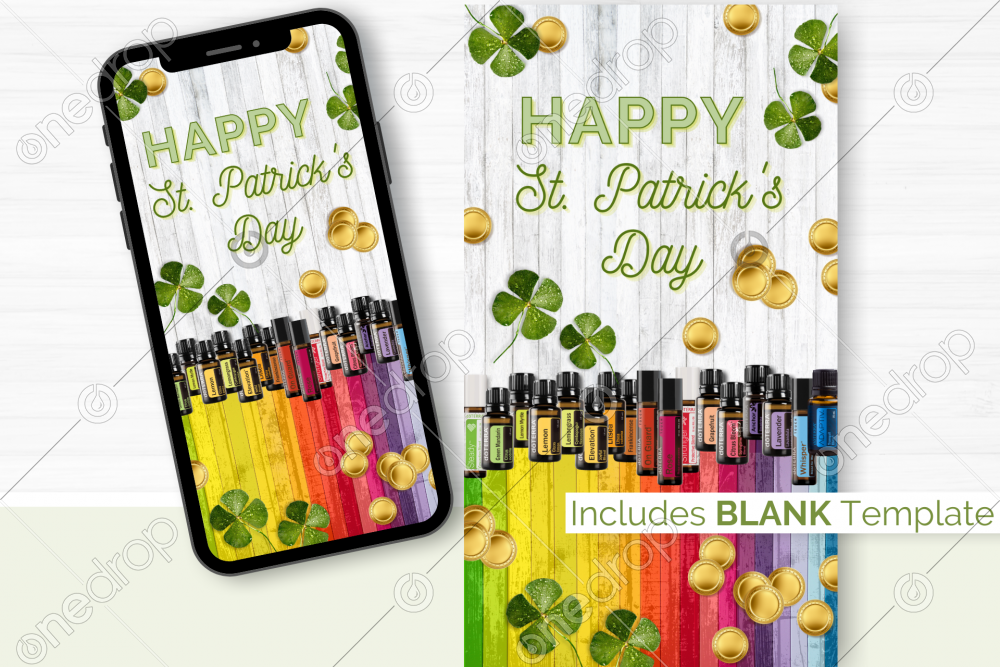 - Wood plank background, flat lay 4 leaf clovers, and gold coins