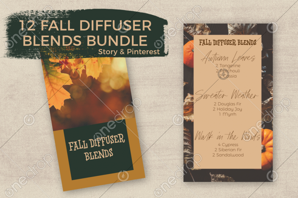 - Diffuser blends featured: Harvest Bliss, Autumn Hues, Orchard Stroll, Autumn Leaves, Sweater Weather, Walk in the Woods, Hot Cider, Pumpkin Spice, Spiced Chai, Apple Pie, Orange Cinnamon Buns, Gingersnap Cookies