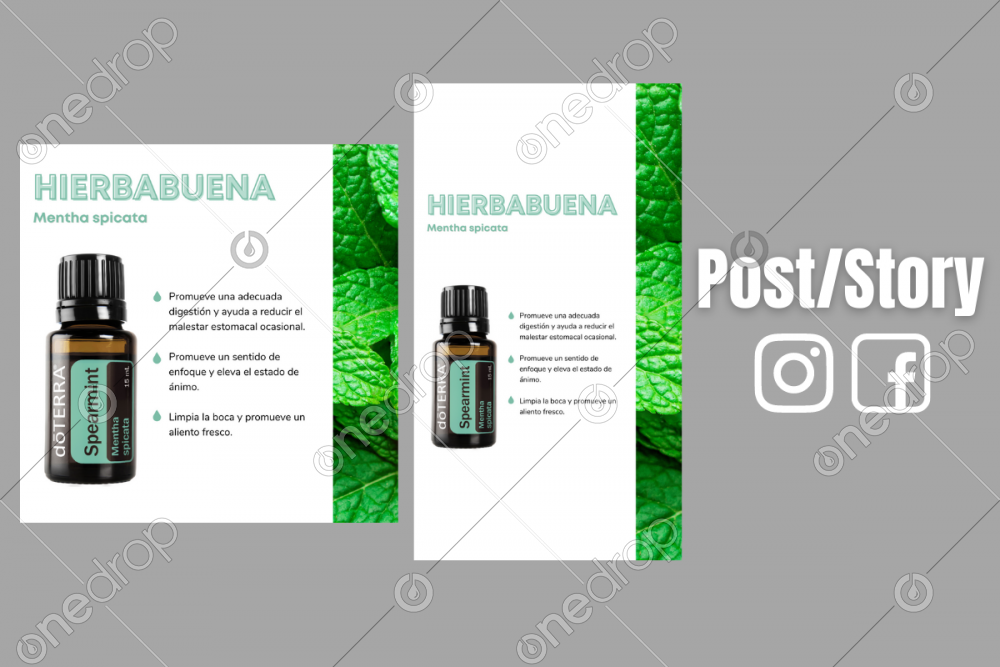 Paquete de 2 imágenes con los beneficios del Aceite Esencial de Hierbabuena (Spearmint).
