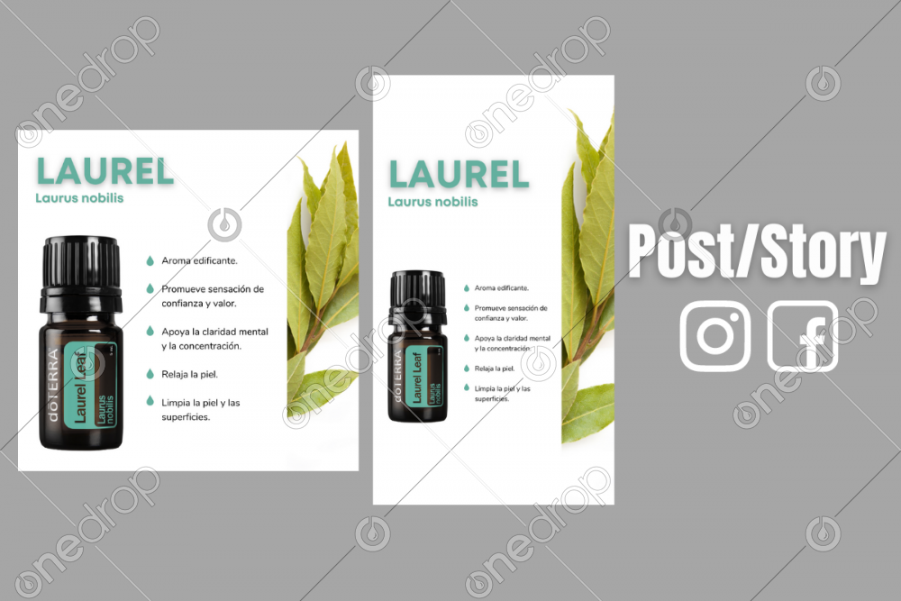 Paquete de 2 imágenes con los beneficios del Aceite Esencial de Laurel.