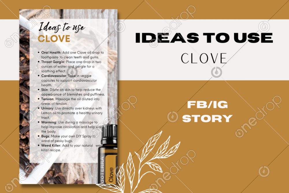 Clove has been used for years in dental preparations, candy, and gum for its flavor and ability to cleanse the mouth, yet it provides a myriad of benefits. Its main chemical component, eugenol, makes it a very stimulating and energizing essential oil that can be used as a warming massage oil. Clove oil contains powerful antioxidant properties and supports cardiovascular health when taken internally. As a cooking spice, Clove oil adds a spicy flavor to any dish or dessert while providing internal health benefits. One Clove essential oil drop can clean the teeth and gums while promoting fresh breath.