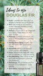 Douglas Fir is a conifer that grows natively throughout North America. This tall, evergreen fir tree is frequently used in the Christmas tree industry and has a lemonscented note that’s sweet and refreshing. doTERRA Douglas Fir essential oil is sustainably sourced from young trees in New Zealand, where it is a highly invasive species threatening the country’s ecosystem. By harvesting young Douglas Fir trees and using them for essential oil, doTERRA is helping combat the environmental impact of the trees overtaking the land while providing a premium conifer essential oil. Douglas Fir has a unique chemical composition that’s particularly rich in β-pinene, contributing to its ability to encourage an optimistic and stimulating environment. Douglas Fir can also be used to purify the skin and surfaces. Blending Douglas Fir with citrus oils will create an uplifting environment while freshening the air.