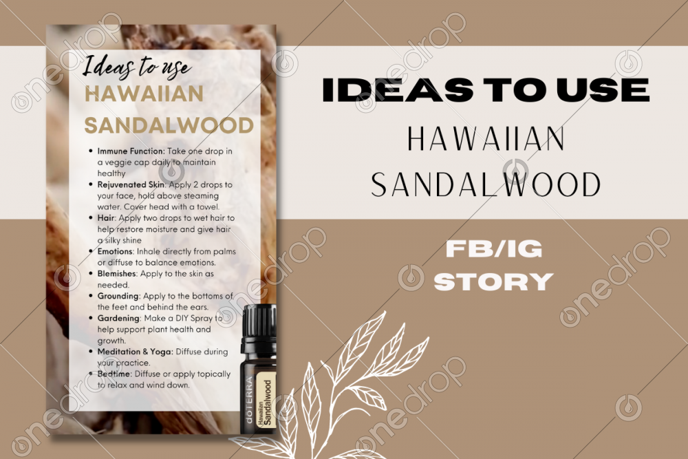 From a renewable source in Hawaii, doTERRA’s amazing Hawaiian Sandalwood essential oil delivers a variety of benefits, including smoothing skin. With thousands of years of documented use, this oil has a high value to many users. Hawaiian Sandalwood has a rich, sweet, woody aroma, making it a perfect oil to incorporate into massage or aromatherapy. Hawaiian Sandalwood is very soothing and beneficial to the skin, making it highly sought after in body and skin care products. Research suggests Hawaiian Sandalwood helps with the appearance of skin imperfections. In addition to being soothing and beneficial to the skin, Hawaiian Sandalwood provides these same effects to the atmosphere of a room, creating a positive environment for meditation or personal interaction.