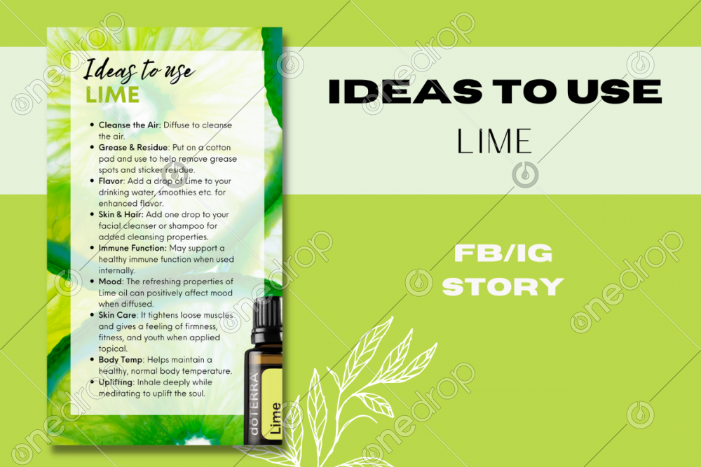 Cold-pressed from the peel of fresh limes, doTERRA Lime essential oil is refreshing and energizing in both aroma and taste. Limes are frequently used in entrées and beverages for their fresh, citrus flavor. Due to its high limonene content, Lime essemtoa; oil provides internal cleansing benefits and the citrusy aroma can be diffused to help freshen the air. It’s also an effective and natural surface cleaner. Lime oil is frequently used in facial and body cleansers for its purifying properties and uplifting scent.