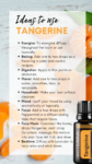 Tangerine has a long history of use in Chinese culture and herbal health practices. Tangerine essential oil supports healthy digestion and metabolism when used internally. Tangerine oil has a sweet, tangy aroma, similar to other citrus oils, that is uplifting. Tangerine oil is known for its cleansing properties, and for supporting a healthy immune and respiratory system when ingested. A popular and flavorful addition to desserts and drinks—from water to fruit smoothies—Tangerine can be used in any recipe calling for citrus fruits.