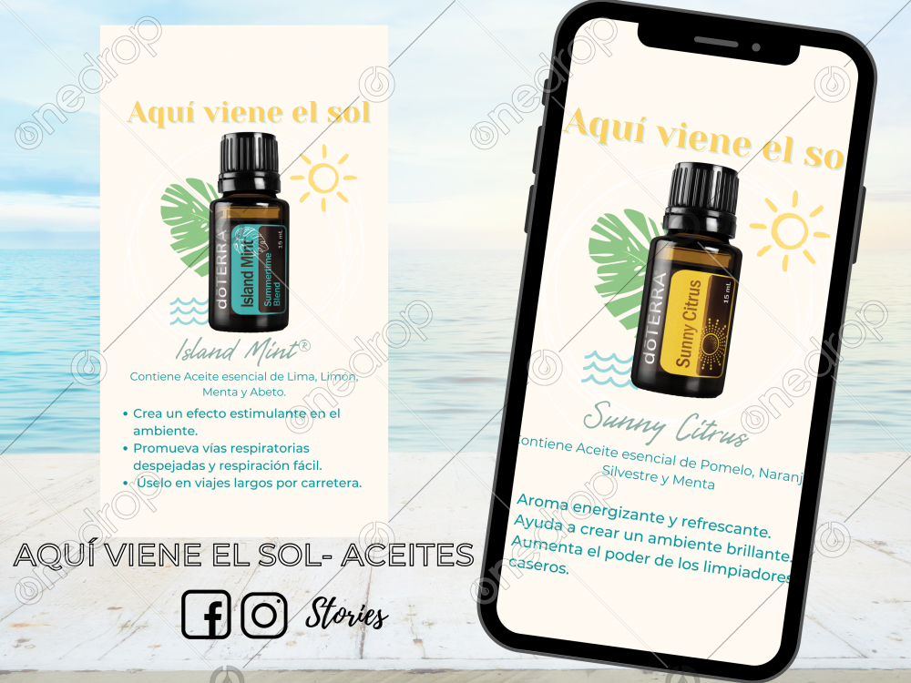 Mezcla de aceites Island Mint® y Sunny Citrus para historias de Instagram y facebook en español.