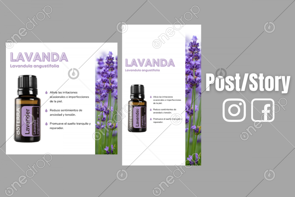 Paquete de 2 imágenes con los beneficios del Aceite Esencial de Lavanda [Lavender].