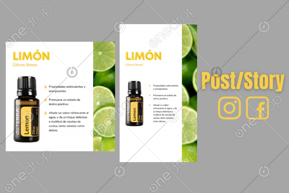 Paquete de 2 imágenes con los beneficios del Aceite Esencial de Limón [Lemon].