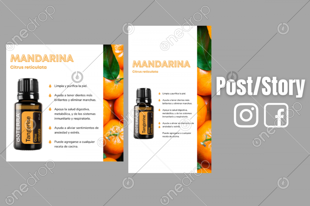 Paquete de 2 imágenes con los beneficios del Aceite Esencial de Mandarina (Tangerine).