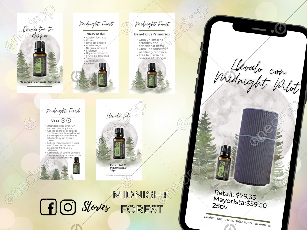 Historias para Instagram o Facebook sobre Midnight Forest + difusor portátil Midnight Pilot.