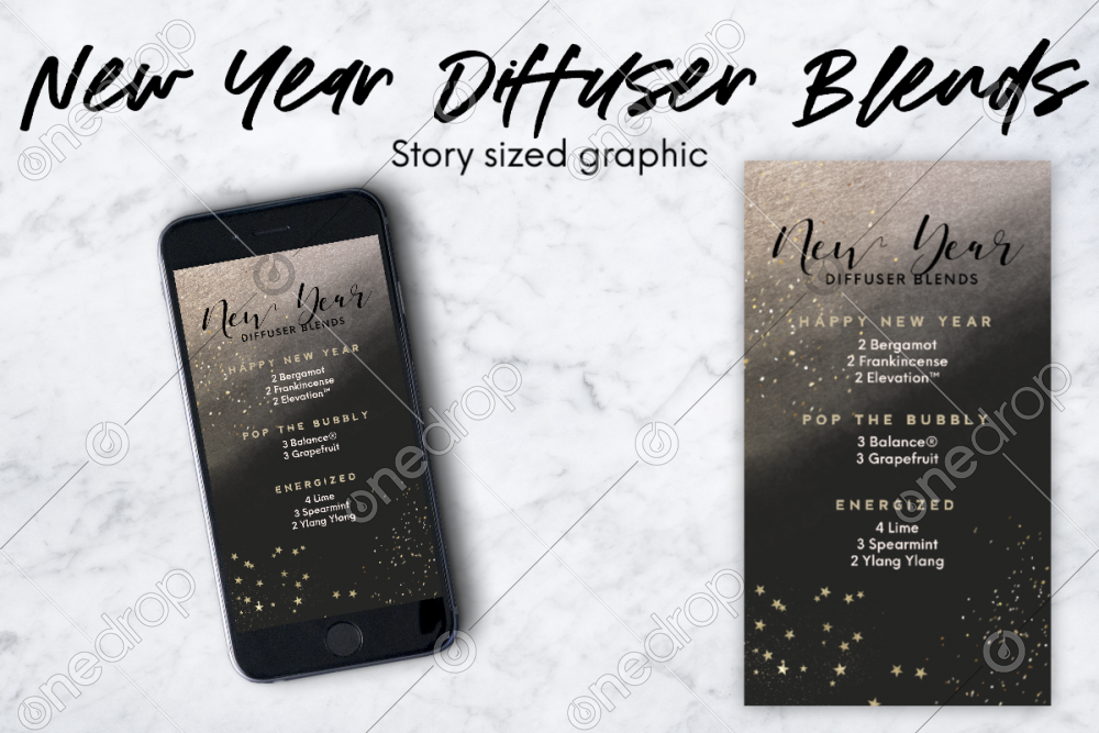 1 story sized image with three New Year diffuser blends, perfect for Instagram and Facebook stories and Pinterest pins or stories