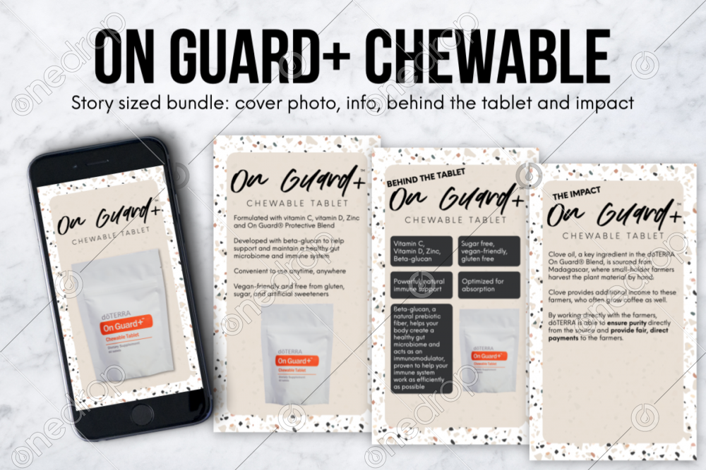Four story-sized images for On Guard+ Chewable Tablet (perfect for Instagram or Facebook story, Pinterest Pins and Stories, Reel cover photos):