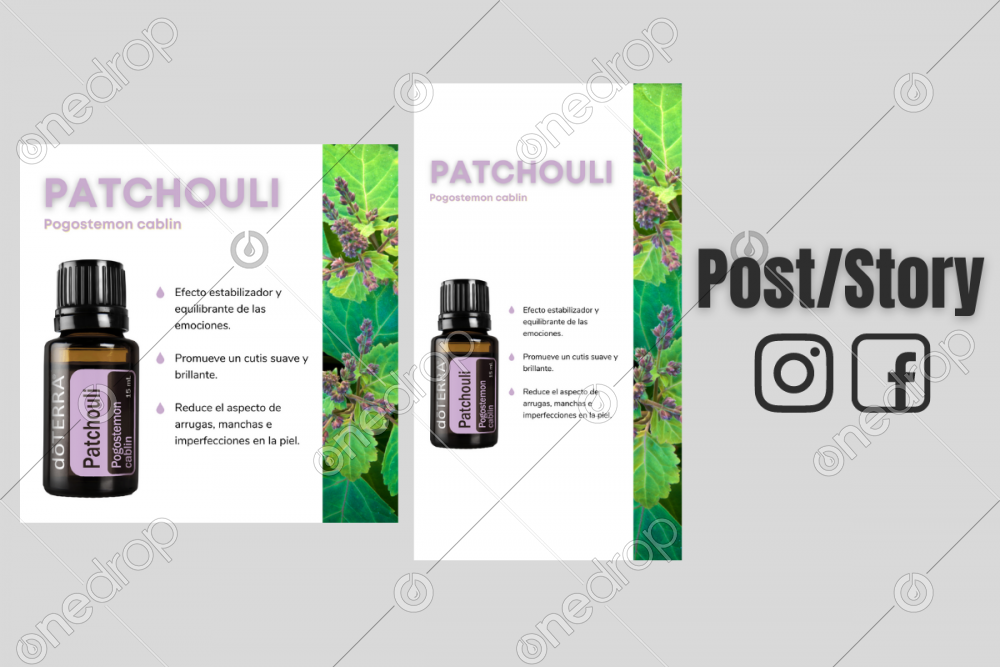 Paquete de 2 imágenes con los beneficios deL Aceite Esencial de Pachuli - Patchouli.