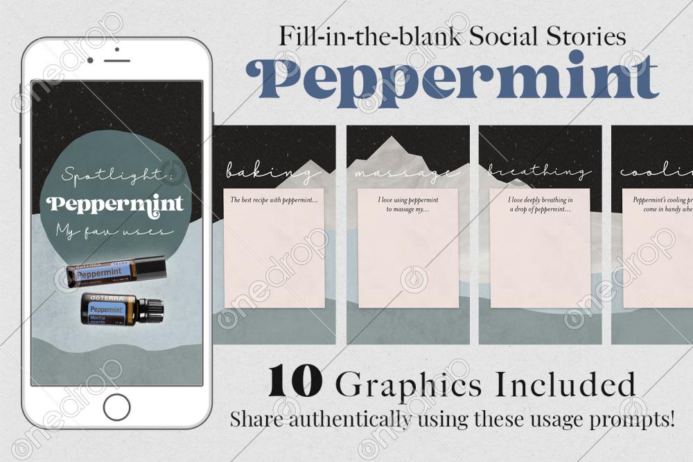 Use these prompt-style educational graphics to spotlight Peppermint essential oil and share authentically with your community using your personal stories and experiences.