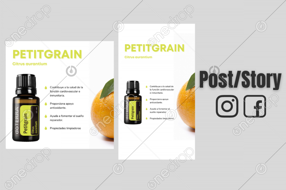 Paquete de 2 imágenes con los beneficios el Aceite Esencial de Petitgrain.