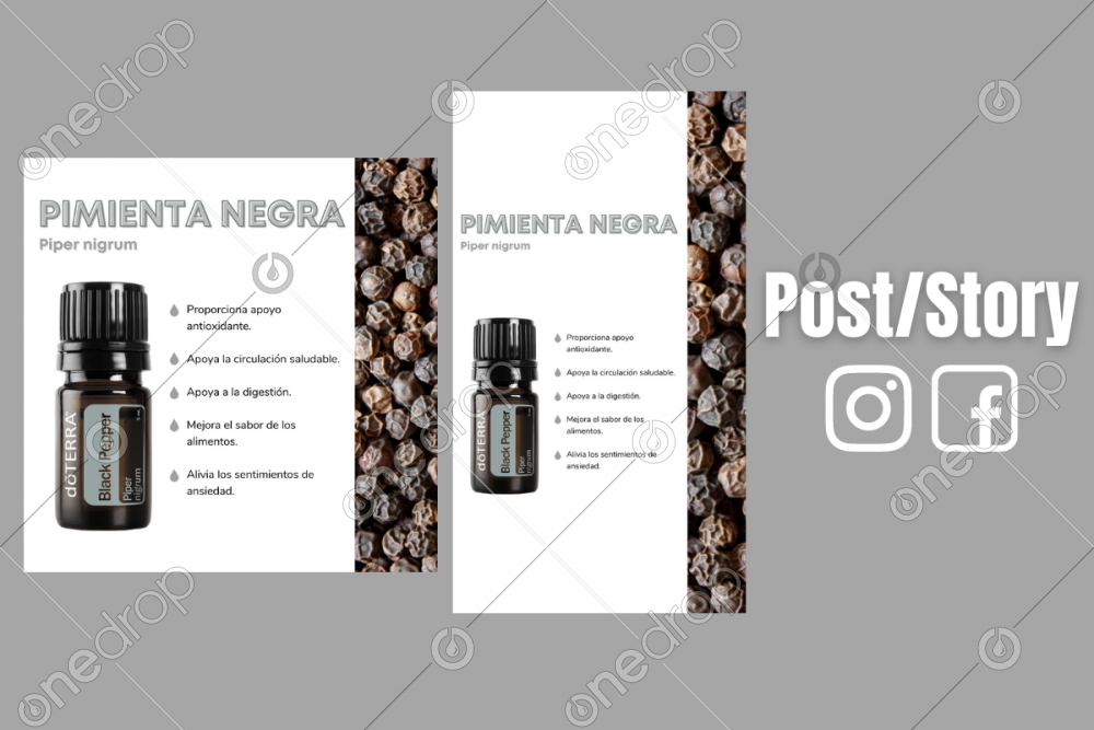 Paquete de 2 imágenes con los beneficios del Aceite Esencial de Pimienta Negra [Black Pepper].
