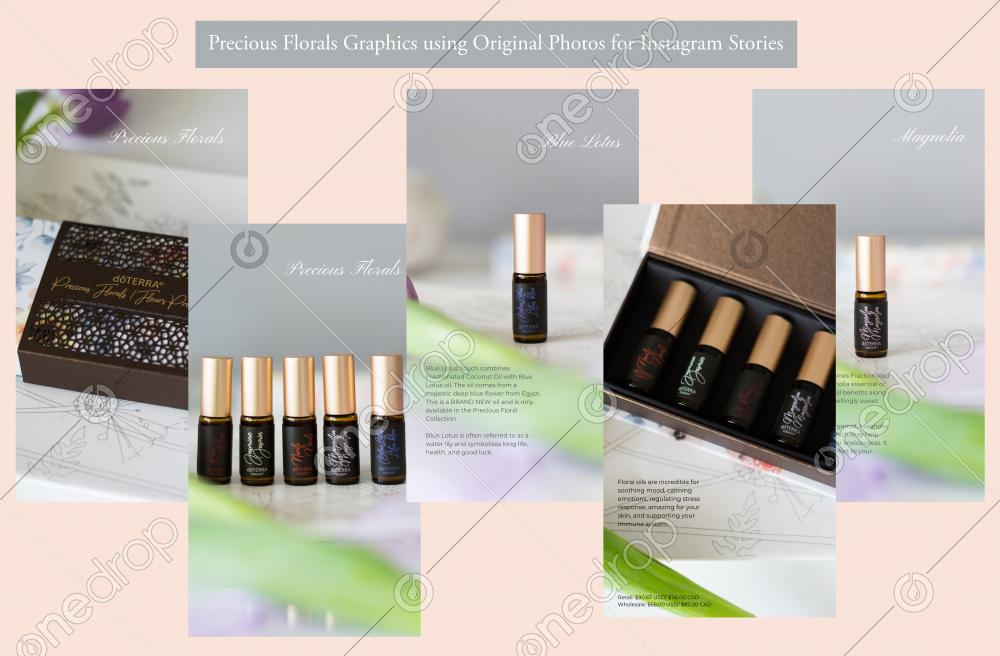Precious Florals Instagram Stories Graphics with educational copy and original photographs. Contains a set of 8 graphics.