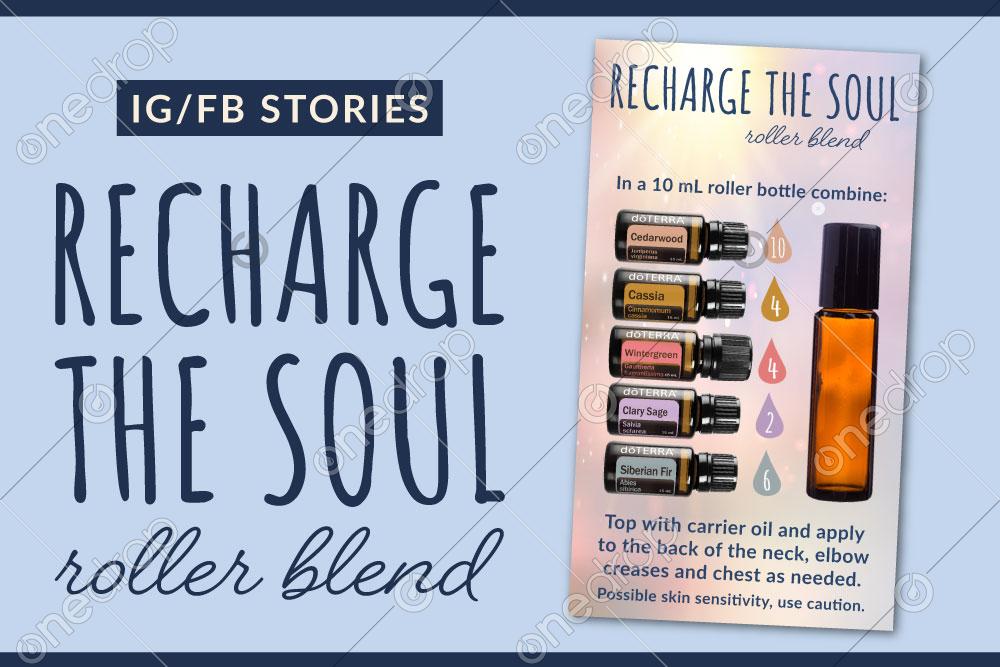 Recharge the Soul Roller Blend recipe graphic in IG/FB stories format.