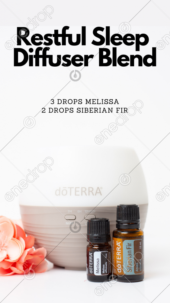 This graphic shows a diffuser blend for restful sleep using Melissa and Siberian Fir.