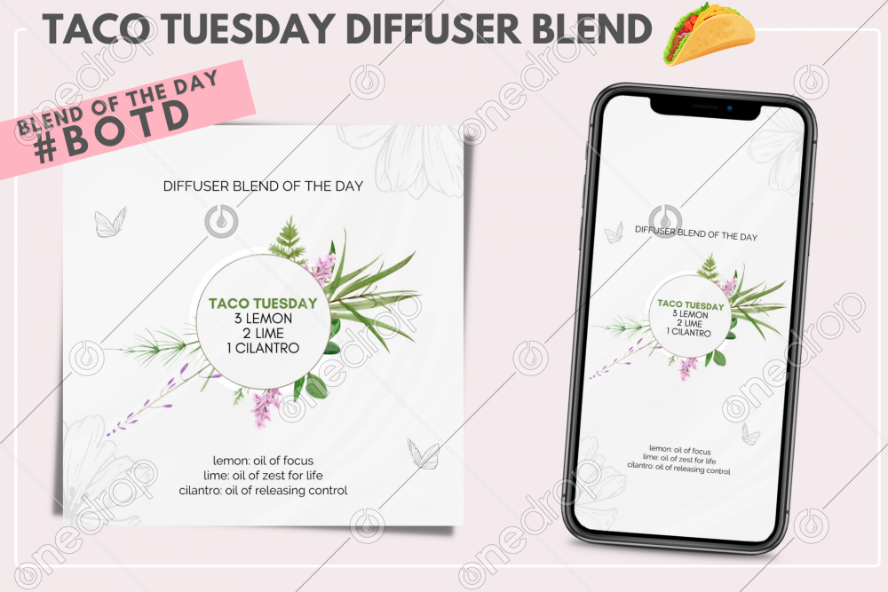 - Use the graphic as a Reel Cover or as content in a video you create showing yourself loading the diffuser with the blend