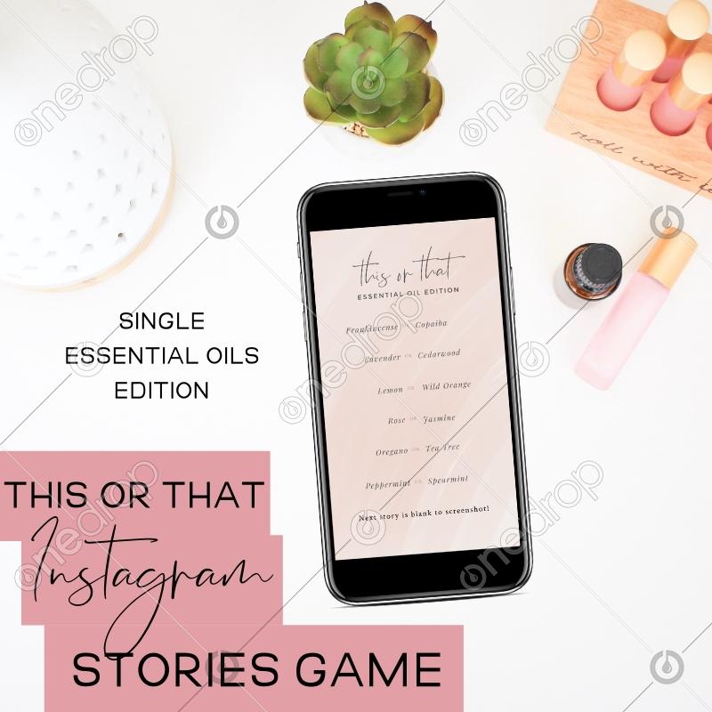 This or that game that can be played on Instagram Stories using single essential oils to increase engagement.