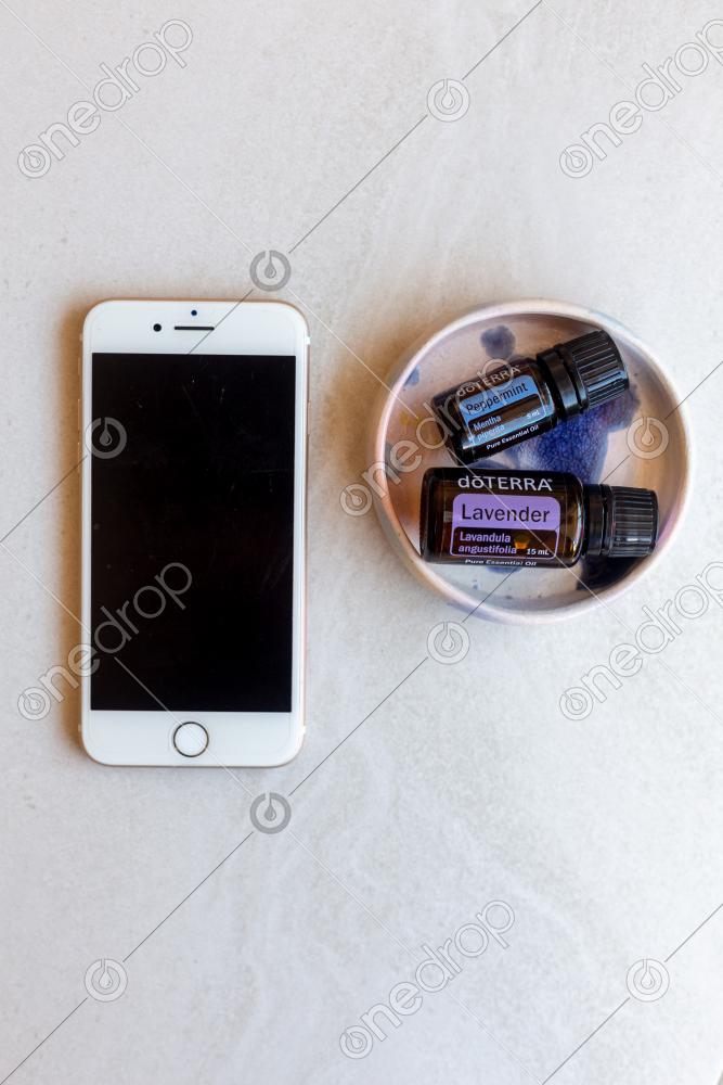 Blank Phone With dōTERRA Lavender and dōTERRA Peppermint