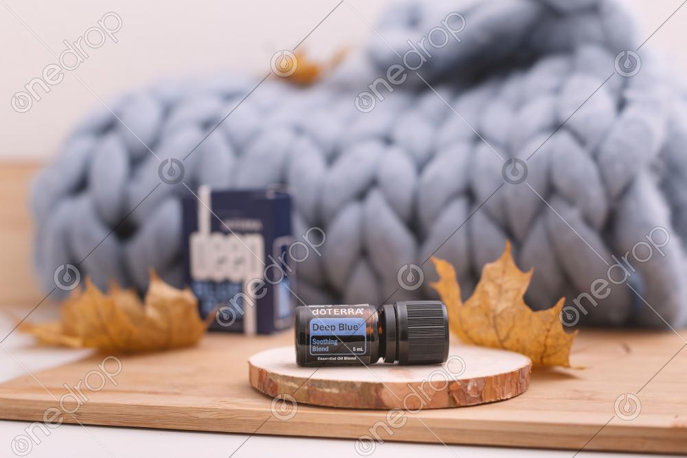Bundle. Blend dōTERRA Deep Blue and sample rub lotion on blurred background
