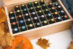 Bundle - Collection of essential oils in wooden box in autumn interior