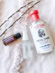 Add witch hazel, water, and essential oil into a 2 oz spray bottle and spray linens!
