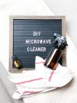 2. Spray mixture inside the microwave, let sit and wipe clean using a damp cloth!