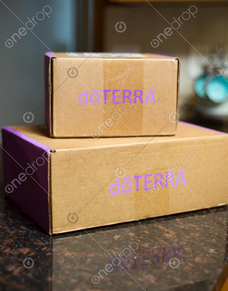 Doterra boxes on kitchen counter top
