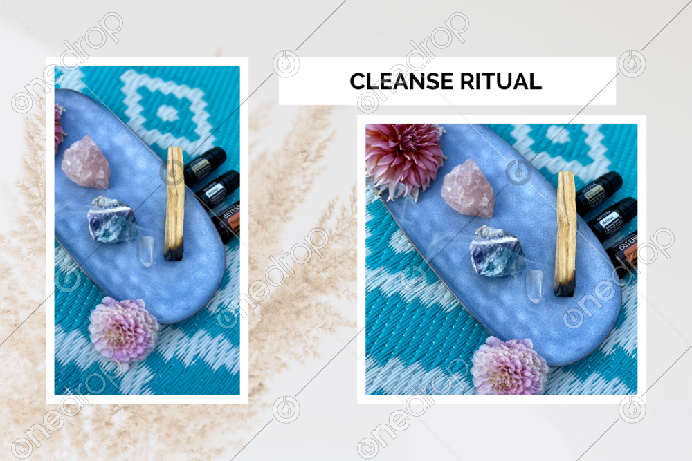 Hawaïan Sandalwood, Melissa, Frankincense with gemstones, flowers, palo santo cleanse ritual