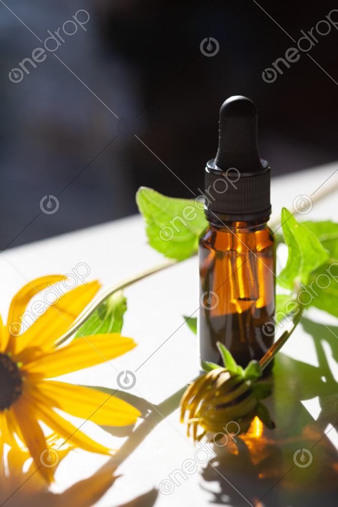 Essential Oil Dropper Bottle with Yellow Flower
