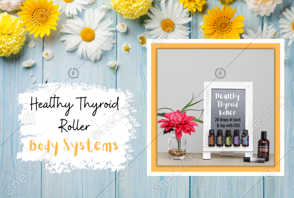 Thyroid Roller Blend recipe image for your social media pages. This image is included in the Body Systems with Oils content calendar. Square social media lifestyle graphic. Please watermark this image to protect your investment and my work.